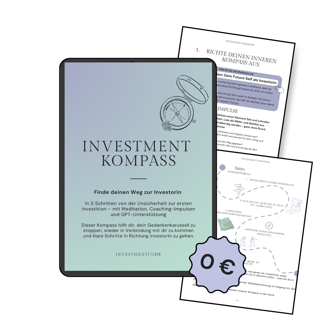 Hol dir den Investment Kompass – kostenlos. Weniger Zweifel. Mehr Richtung. Dein Weg beginnt jetzt.